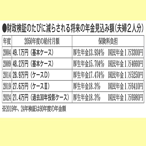 予測ズレまくる「財政検証」の不可解…年金は減る一方「20年前は夫婦で49.1万円⇒最新試算21.4万円」