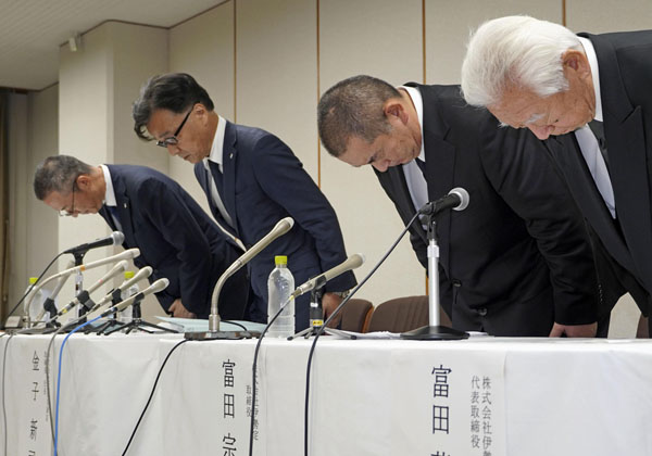 謝罪する京急百貨店の金子新司社長(左から2人目)ら(C)共同通信社