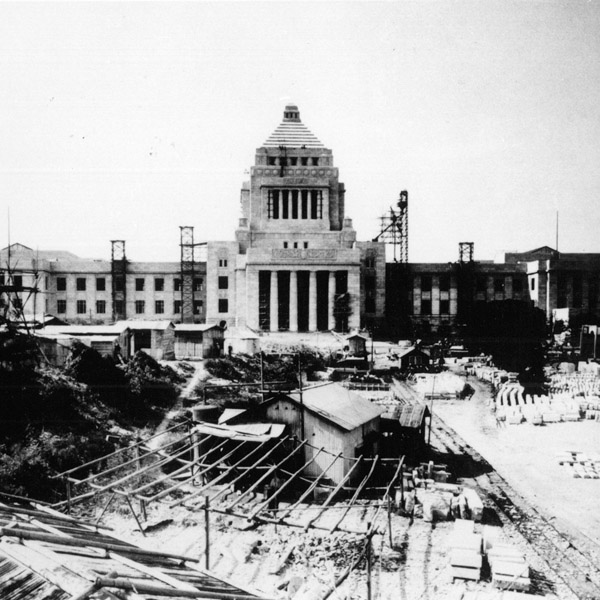 当時の、施工中の国会議事堂(提供)ナカノフドー建設