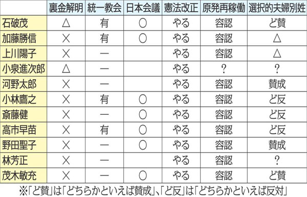 自民総裁選「重要6争点」を徹底比較 出馬表明・模索11人のアタマの中が丸わかり【一覧表付き】
