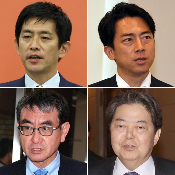 左上から時計回りで、小林鷹之前経済安保相、小泉進次郎元環境相、林芳正官房長官、河野太郎デジタル相(C)日刊ゲンダイ