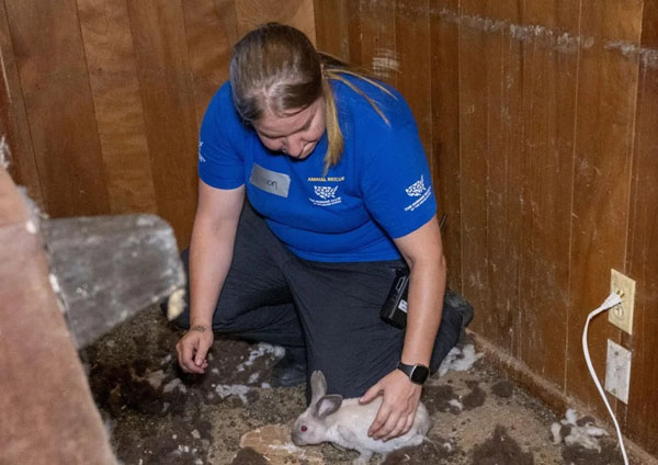 ウサギを救出するHSUS職員(HSUSの公式サイトから)