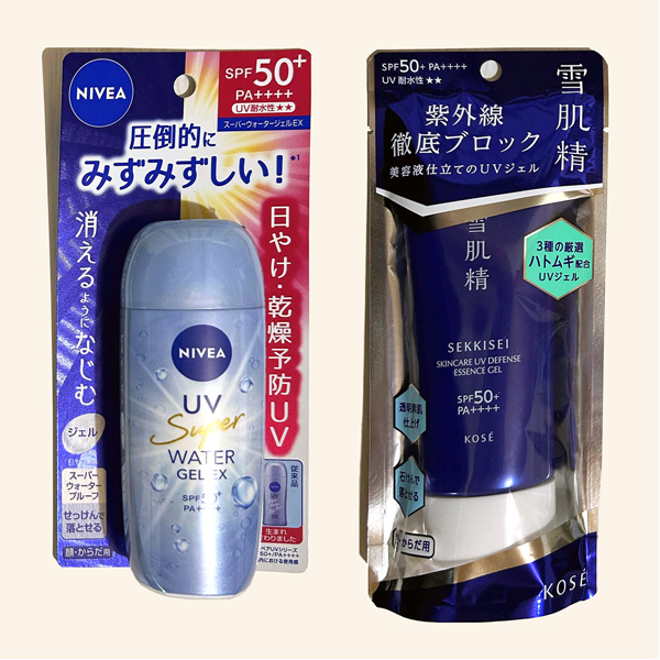 「ニベアUVスーパーウォータージェルEX」と「雪肌精のスキンケアUVエッセンスジェル」/(C)日刊ゲンダイ