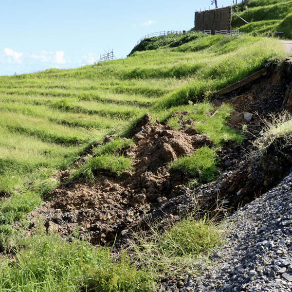 豪雨被害を受地滑りが起きた白米千枚田(C)共同通信社