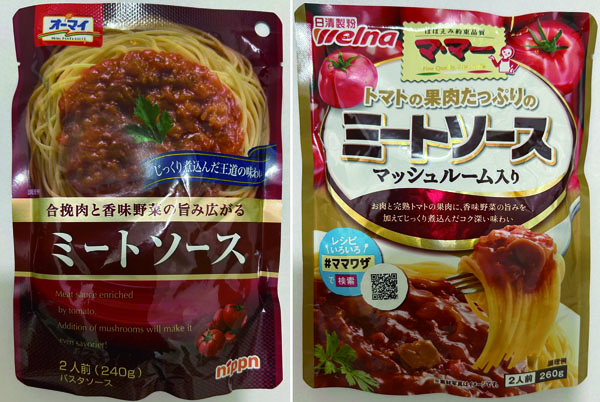 日清製粉ウェルナ「マ・マー」vsニップン「オーマイ」ミートソースの色や甘さは?