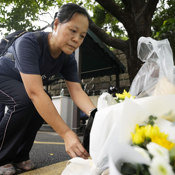 献花が絶えなかった日本人学校前(C)共同通信社