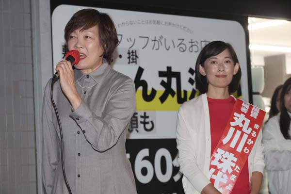 丸川珠代元五輪相(右)の応援演説をする安倍昭恵・安倍元首相夫人(C)日刊ゲンダイ