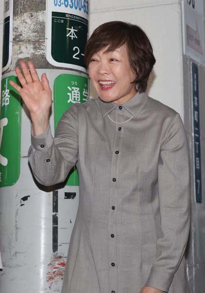 有権者に手を振りにっこり(C)日刊ゲンダイ