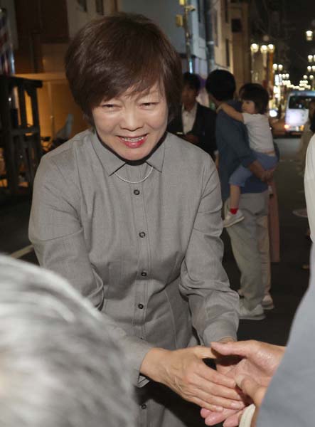 有権者と握手する安倍昭恵・安倍元首相夫人(C)日刊ゲンダイ