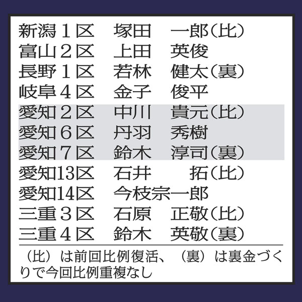 【別表】旧統一教会が支援対象とした第3地区の自民党公認候補ら=2021年衆院選(C)日刊ゲンダイ