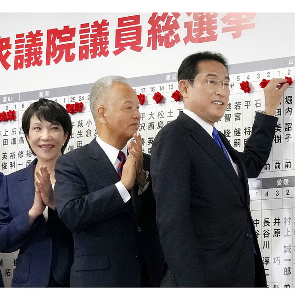 2021年衆院選、旧統一教会が自民党をモーレツ支援していた証拠が明らかに(右から、岸田前首相、甘利明氏、高市早苗氏)/(C)共同通信社