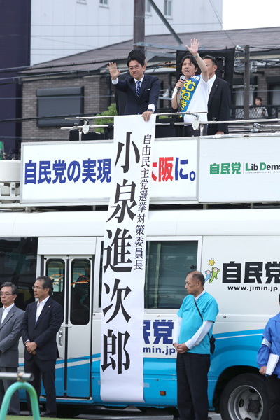 大阪13区・宗清皇一氏(落選)の応援で大阪入りした小泉進次郎選対委員長(C)日刊ゲンダイ