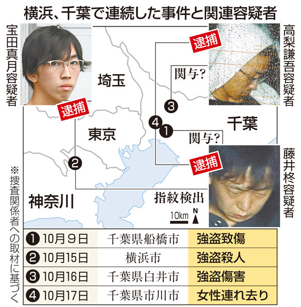 横浜、千葉で連続した事件と関連容疑者(C)共同通信社