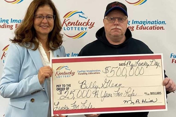 大喜びのビリーさん(米ケンタッキー州宝くじ当局の公式サイトから)(C)日刊ゲンダイ