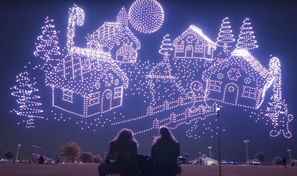 うっとり…テキサスの夜空に「お菓子の家の村」が出現、ドローン4981機で描いて世界記録認定!