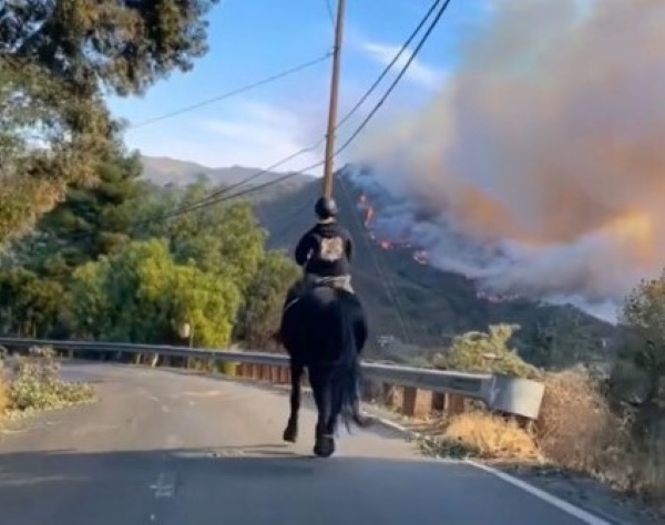 ロス山火事で16歳少女の勇気に喝采! 怯える馬に自ら乗って安全地帯まで22キロ避難誘導
