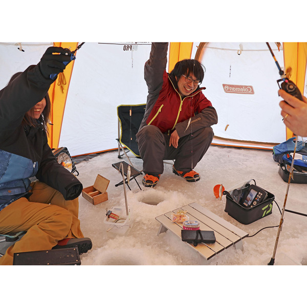 2024年は3週間で終了(氷上ワカサギ釣りがやっと解禁され楽しむ人たち=岩洞湖、31日)/(C)共同通信社