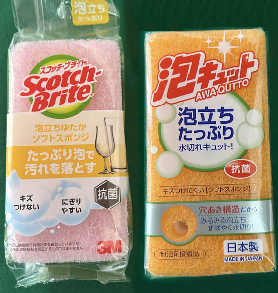 3M「スコッチ・ブライト」vsオーエ「泡キュット」を比較…スポンジの泡立ちや柔らかさは?