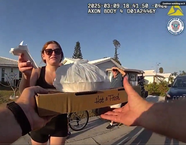 代わりにピザを届けようとしたら…(米ブラデントン市警のXより)
