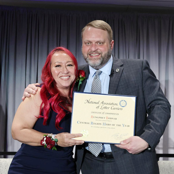 年間英雄賞を受賞した郵便配達員のルングフェットさん(左、=米「NACL」のフェイスブックから)