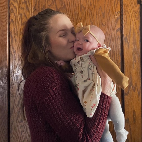 生まれたばかりの娘を抱くアビーさん(本人のインスタグラムから)