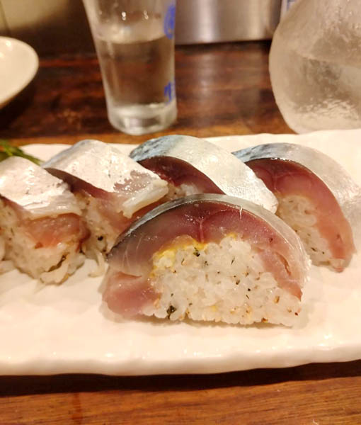 根津「車屋」で厚みがあり脂の乗った鯖の一本寿司を堪能