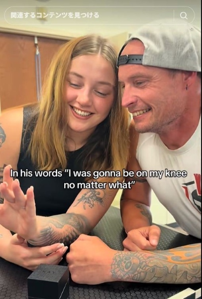 プロポーズの後、婚約指輪を見てニッコリ(メイシーさんのTikTokから)