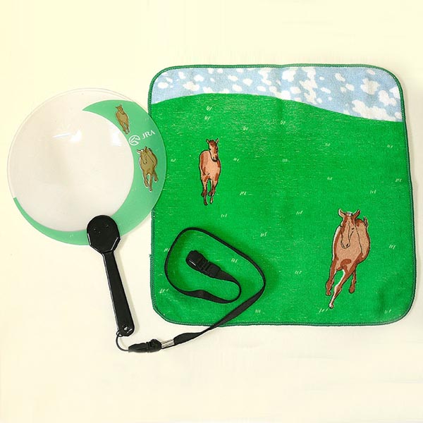 「首掛けBIGルーペとお馬のタオルセット」(提供写真)