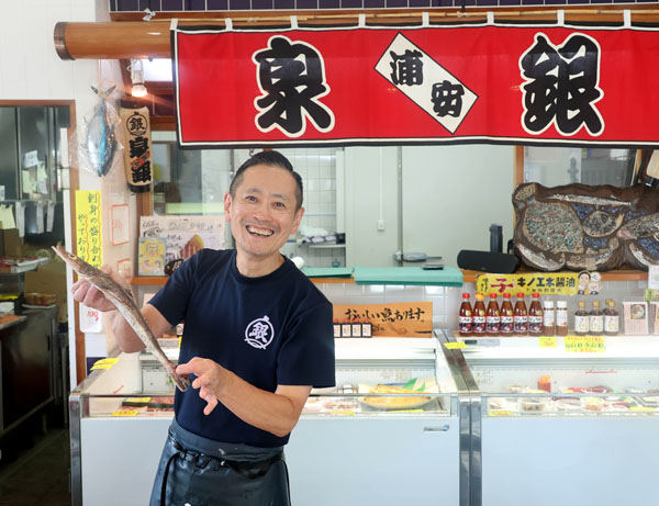 地元の魚介類はもちろん、日本全国から取り寄せている「泉銀」はまるで値札がついた水族館