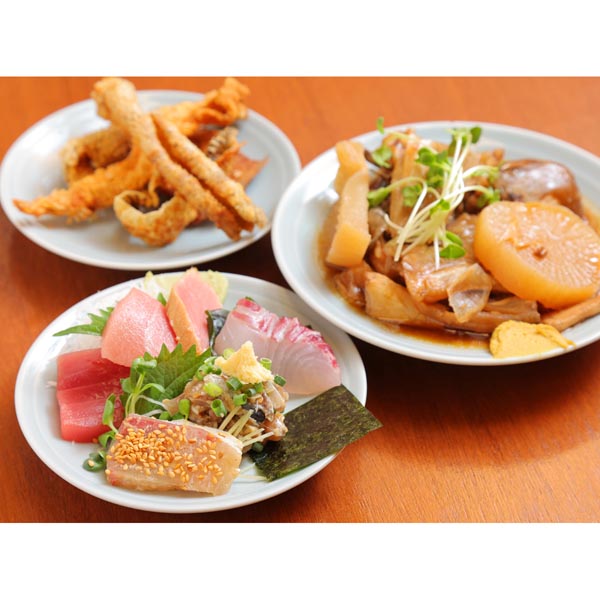 魚せんべい(左上)やあら煮大根(右)も人気(C)日刊ゲンダイ