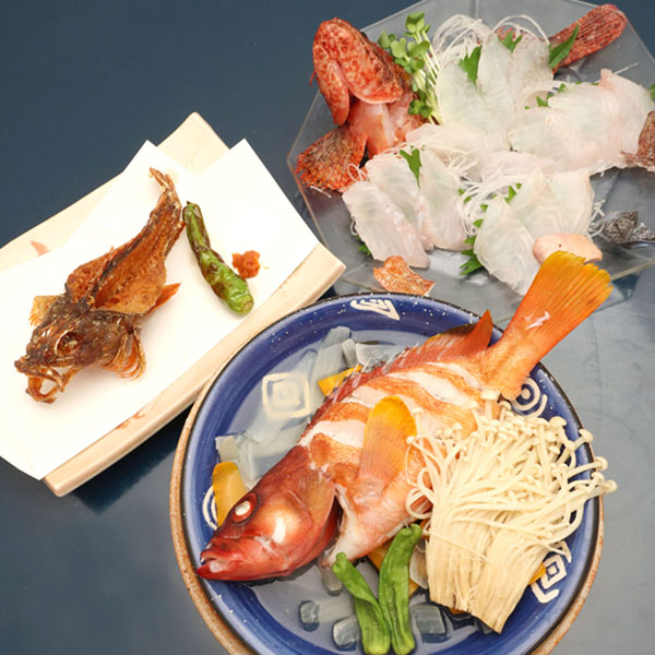 カサゴ(左)は丸ごと揚げて骨まで食べられる。刺し身の4点盛りのうちクロメバルは肝付き!(C)日刊ゲンダイ