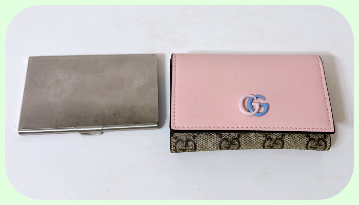 100円均一の名刺入れ(左)とグッチの名刺入れ(右)/(写真:canちゃん)