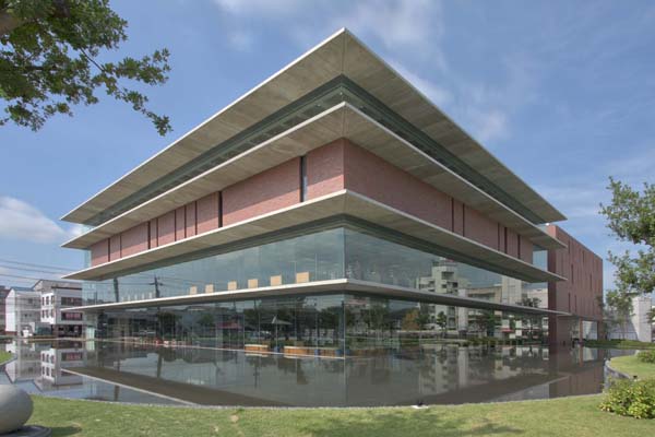 水盤が囲む(「福山市中央図書館」提供)