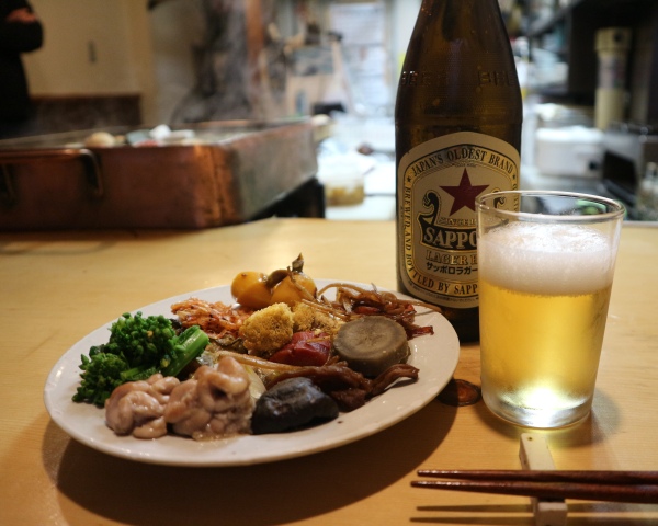 まずは総菜の盛り合わせで瓶ビールから(写真)大竹聡