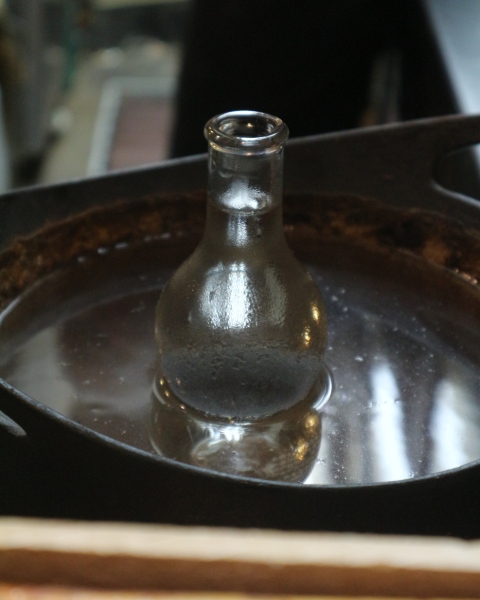 燗酒は鉄の鍋に張った湯でつけてくれる(写真)大竹聡