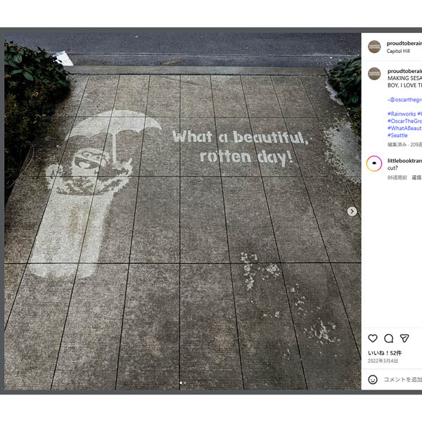 濡れると絵が!米シアトルの「レインワークス」が“雨の日を前向きになれるアート”だと話題に