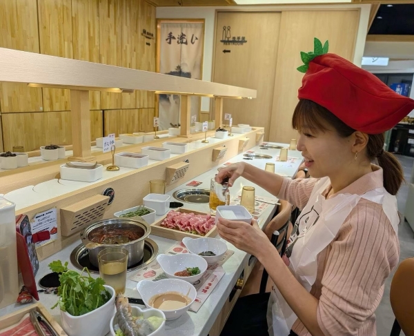 回転火鍋はレーンで運ばれてくる(転多々)/(撮影)金成姫