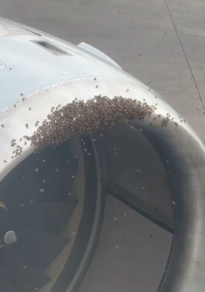 旅客機のタービンにミツバチの大群!米国の養蜂家が女王蜂を救出、投稿が大バズり