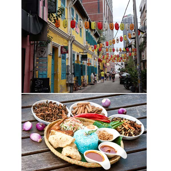 鬼仔巷周辺はまるで中華街(上)、伝統的なマレー料理のナシケラブ(提供)マレーシア政府観光局(C)日刊ゲンダイ