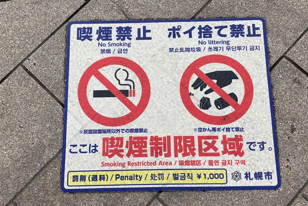 札幌市の喫煙制限区域路上表示(C)日刊ゲンダイ