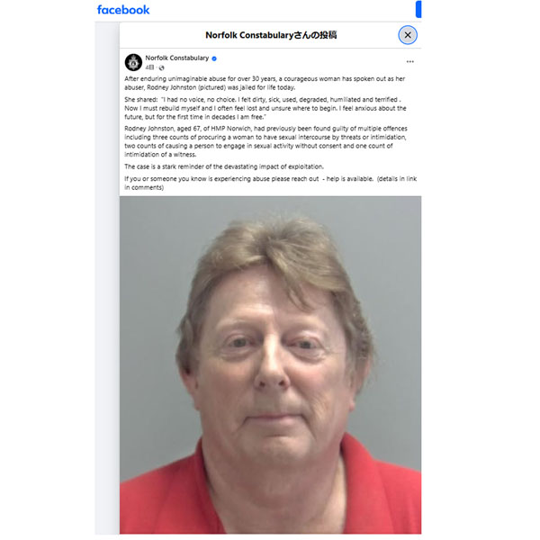 鬼畜(英ノーフォーク警察のフェイスブックから)