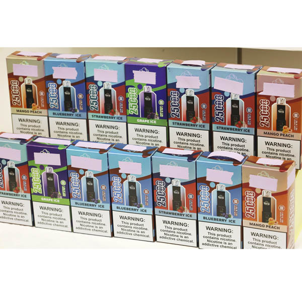 大阪府警が押収した、大学生らが販売していたニコチン入り電子たばこ「ニコパフ」=9日午後、府警本部(C)共同通信社
