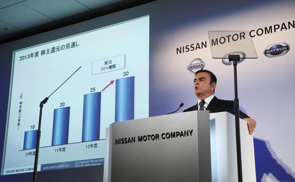 2013年日産自動車決算発表でのゴーン容疑者(C)日刊ゲンダイ
