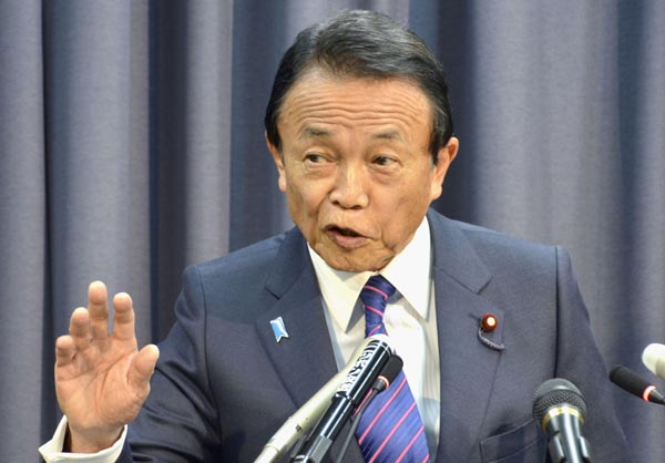 麻生財務大臣は金融庁の報告書は「受け取らない」と述べた(C)共同通信社
