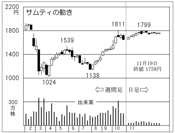 「サムティ」の株価チャート(C)日刊ゲンダイ