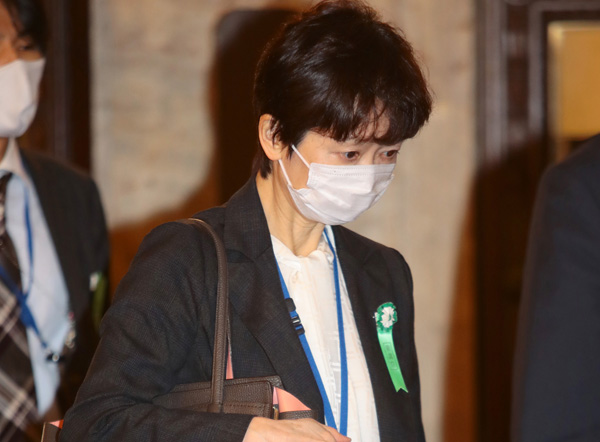 25日午前、予算委員会に向かう山田真貴子内閣広報官(C)日刊ゲンダイ