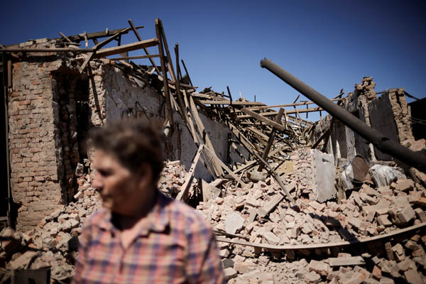 誰が欲しがるというのか(ロシア軍の空爆で破壊されたウクライナザポリージャ州Novotavrycheske村)/(C)ロイター