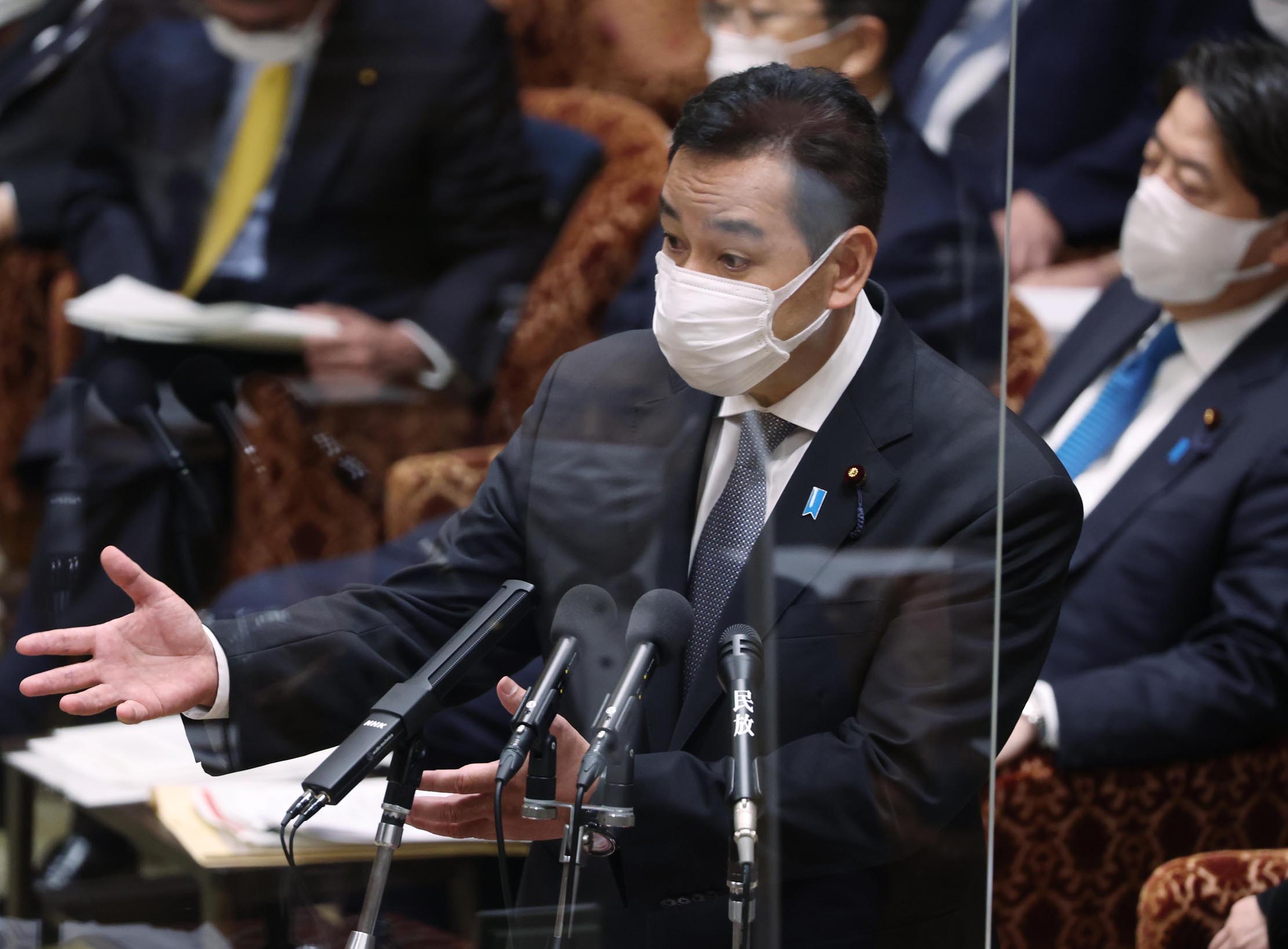 衆議院予算委員会で答弁する山際大志郎経済再生担当相(10月17日)/(C)日刊ゲンダイ