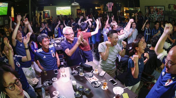 W杯ロシア大会をスポーツバーで観戦し盛り上がるサッカーファン(C)共同通信社