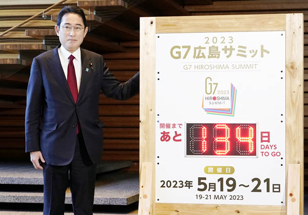華々しくG7広島サミットまでのカウントダウンボード点灯式(岸田首相)/(C)共同通信社